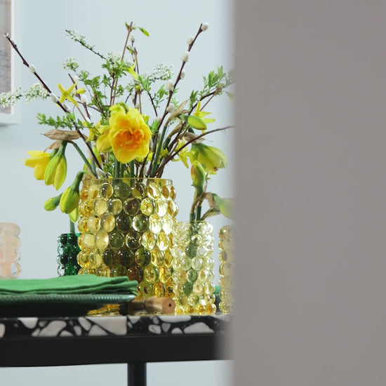 Boule Large är handblåst i landskapet Böhmen, där världens bästa glasblåsare finns. Bubblorna, skapade i en gjutjärnsform, ger Boule sitt unika optiska mönster och en lyxig tung känsla. Kombinera med de andra storlekarna i kollektionen och skapa en fantastisk dukning. Den kan även användas som en vacker vas för blommor.