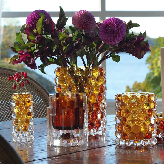 Hurricane Boule regular is hand-blown in Bohemia, home to the world's best glassblowers. The bubbles, created in a cast-iron mould, give Hurricane Boule its own unique optic pattern and a luxurious weighty feel. It can also be used as a beautiful vase.